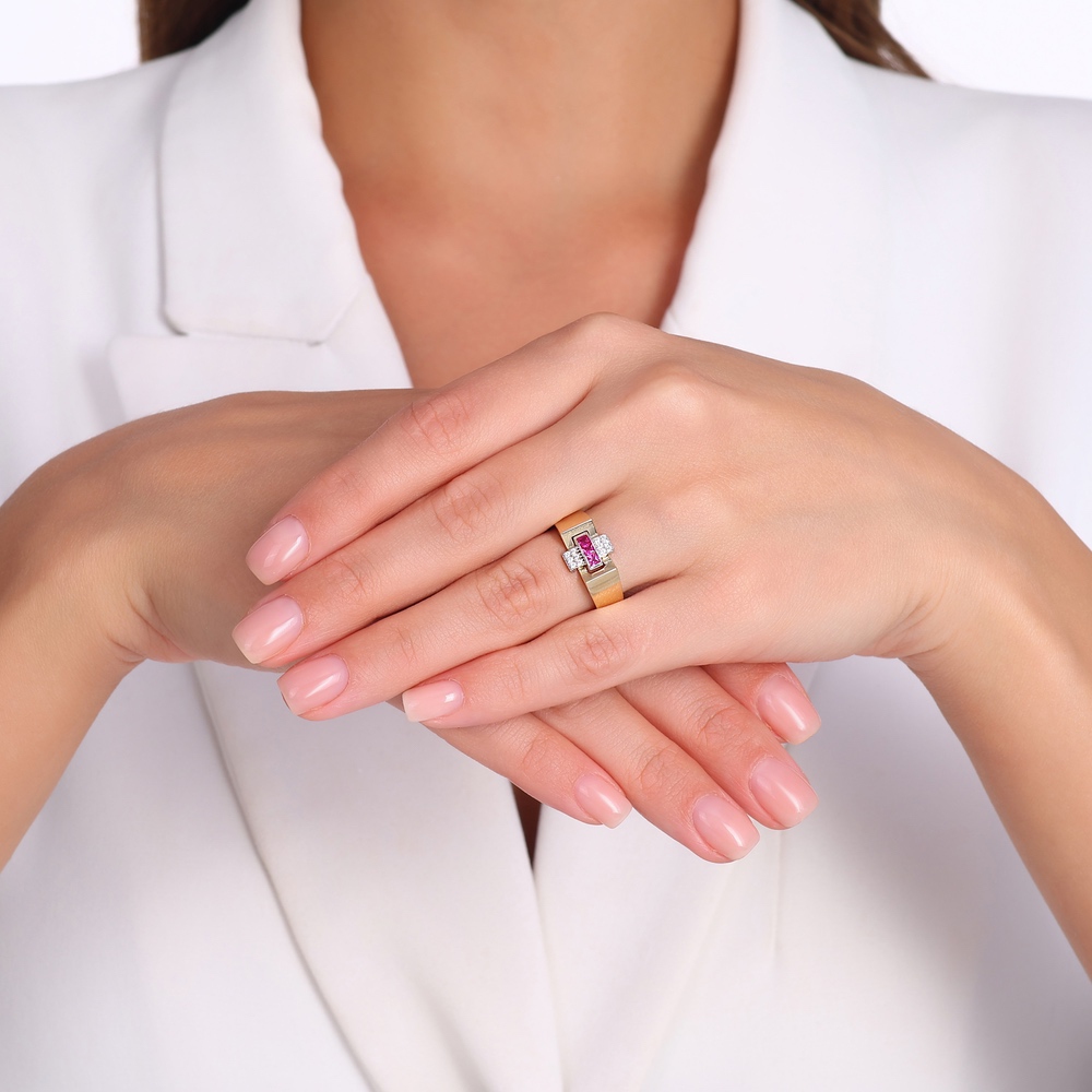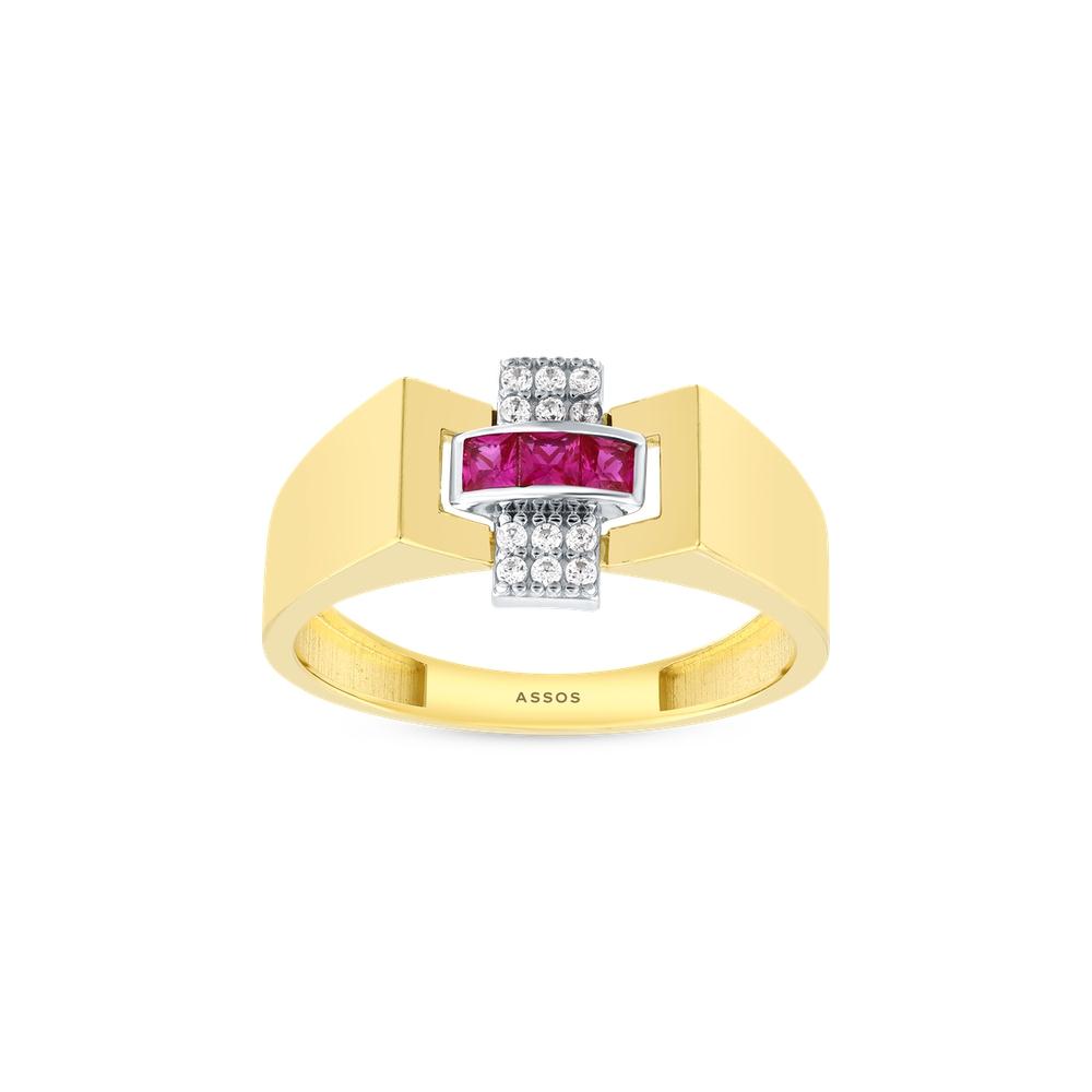 Altın Renkli Taşlı Tasarım Yüzük