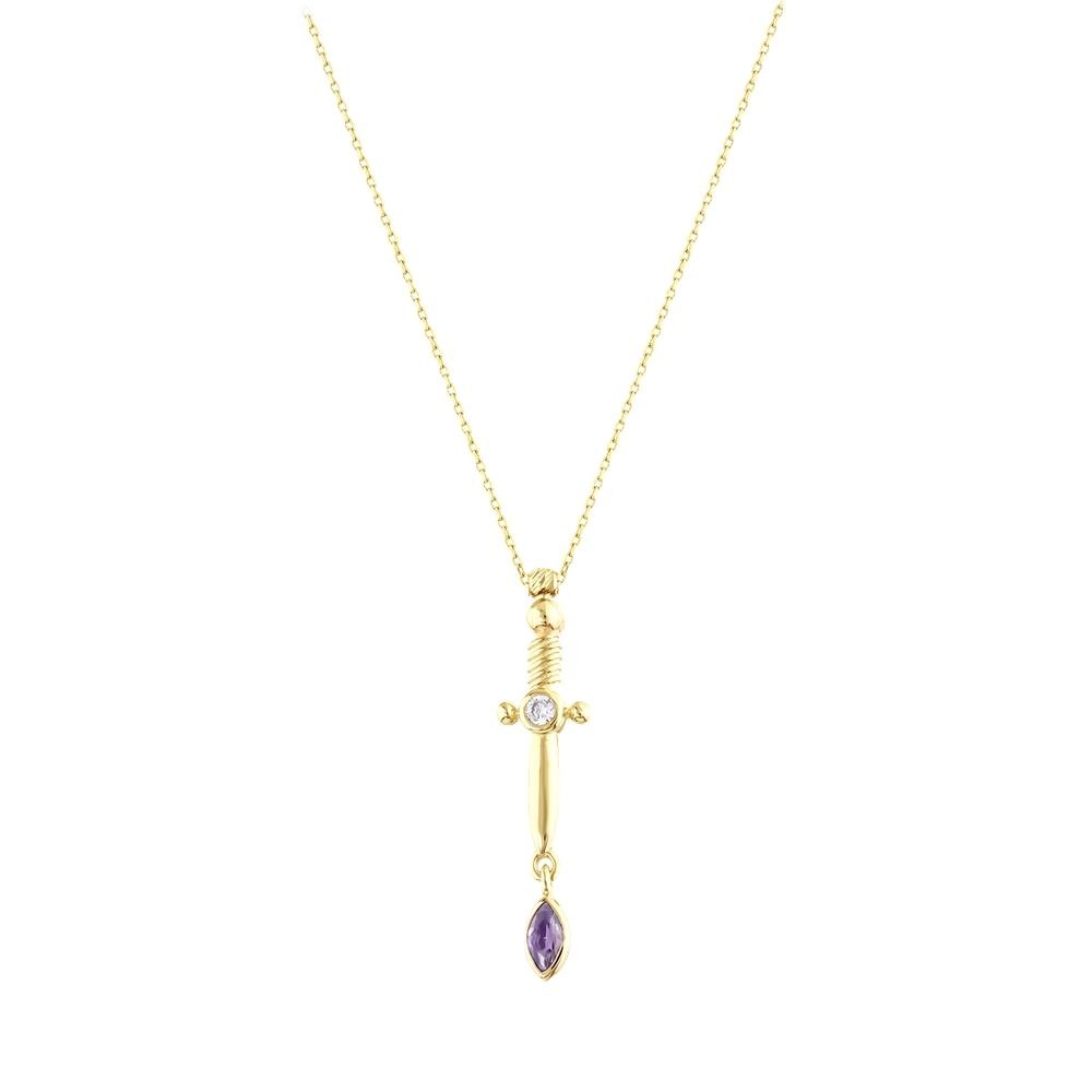 Mor Taşlı Altın Kılıç Kolye