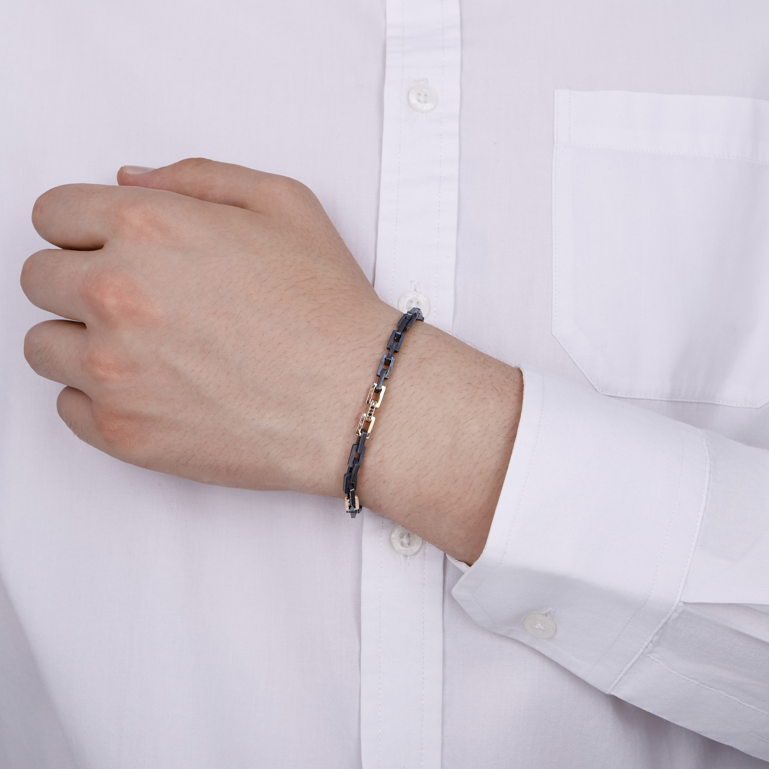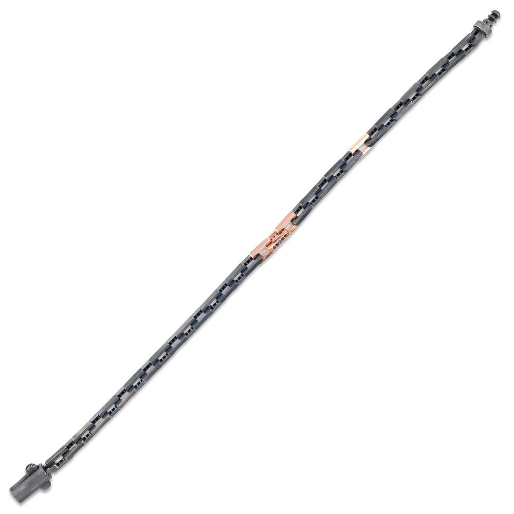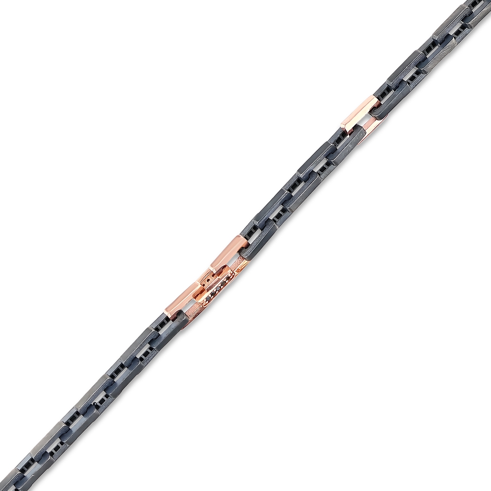 Siyah pırlanta taşlarla süslenmiş bu erkek bileklik, 14 ayar rose altın ve 925 ayar siyah rodajlı gümüş detaylarla tasarlanmıştır. Modern çizgilerle harmanlanan bu özel parça, hem günlük hem de özel anlar için şıklık sunar. Zamansız tasarımı sayesinde klasik ve çağdaş stillerle kolayca uyum sağlar.